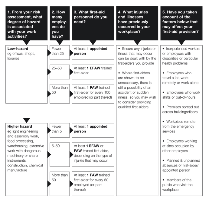 Therefore, employers must take these requirements into account in their risk assessments and first aid needs assessment to ensure they are adequately prepared to deal effectively with potential emergencies.